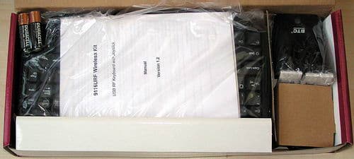 помимо самой клавиатуры и радиоблока с USB-кабелем находится 2 батарейки Duracell, простенькое, но на русском руководство пользователя и компакт-диск с драйверами и софтом.