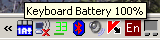 можно контролировать уровень заряда батареи (ступенями 0-30-60-90-100%), а при критичном разряде программа сама сообщит о проблеме. На этой же иконке отображаются (зеленым) ситуации нажатия клавиш Num Lock (см. правый скриншот), Caps Lock и Scroll Lock, поскольку никаких светодиодных индикаторов на самой клавиатуре, к сожалению, нет (в целях экономии энергопотребления).