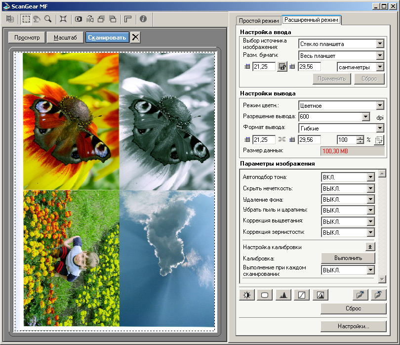 Нельзя не отметить драйвер сканера. Он обладает большим количеством настроек качества сканирования, гистограммами и всякими приятными мелочами типа сигнала окончания сканирования и музыкального сопровождения оного.