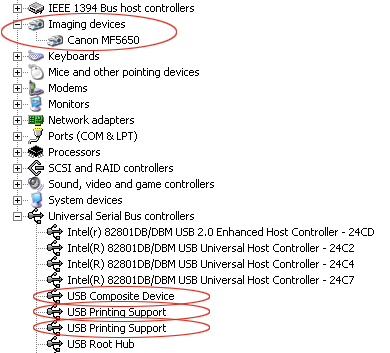 Второй «USB Printing Support» предназначен для отправки документов с компьютера по факсу.