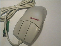 Еще одна достойная мышь, но выпускаемая не с логотипом Logitech, а с логотипом COMPAQ (хотя на этикетке все равно значится Logitech). К сожалению, колесо прокрутки в M-CV46 отсутствует, но, зато, у нее целых четыре кнопки. Три из них расположены так же, как и у любой мыши, а четвертая находится под большим пальцем руки — на левой стенке крышки корпуса. Эргономика корпуса продумана прекрасно — он не слишком короткий и очень удобно располагается в руке. Интерфейсный кабель (длина 1.76 м) заканчивается разъемом типа PS/2, но, в отличие от предыдущей описанной модели (M-SAM-IBM5), никаких фильтров на нем нет.