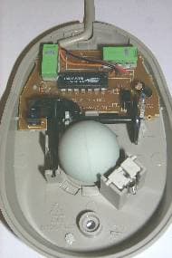 Рассматривая оптомеханическую систему, также можно заметить, что, помимо стоек, у одного из валиков есть еще и фиксирующая защелка. Но, из-за маленького зазора между валиком и защелкой, при малейшем загрязнении валика работа мышки становится некорректной (валик попросту перестает вращаться).