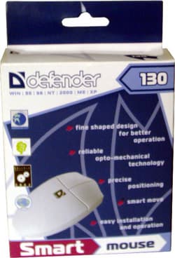 Ну очень простая мышь. Оптико-механическая система, и всего лишь две кнопки. Большая часть современных пользователей на Defender 130 не обратили бы внимания. им подавай оптическую мышь, колесо прокрутки и побольше кнопок. Однако примитивные мыши еще востребованы, и кто-то их еще покупает. На сегодняшний день мыши, подобные Defender 130, востребованы там, где мышь в работе используется крайне редко и чаще всего достаточно было бы всего одной кнопки. В таком случае, естественно, нет смысла приобретать более дорогие мыши с колесами прокрутки или оптические. Но даже если встать на точку зрения пользователя, которому мышь практически не нужна, мне Defender 130 не очень понравился. Есть в ее корпусе один существенный недостаток — уж слишком высока задняя часть. В результате, часть ладони, расположенная ближе к запястью, ложась на эту мышь, явно ощущает задний угол верхней крышки корпуса. Комфорта такое ощущение не придает, хотя сказать, что работа с мышью чрезмерно раздражает, тоже нельзя. Ширина продолговатого корпуса, а также размер и форма кнопок нареканий у меня не вызвали. Но, лично я, подержав Defender 130 в руке, отказался бы ее приобрести и поискал другую модель с похожими характеристиками. Если же, все-таки, вы остановили свой выбор именно на Defender 130, то знайте, что выпускается она в трех вариантах. Defender 130 — мышь с интерфейсом PS/2. Defender 130 U — мышь с интерфейсом USB. Defender 130 UP — универсальный вариант PS/2+USB. Для рассматриваемой Defender 130 производителем заявлена разрешающая способность в 400 DPI, а длина интерфейсного кабеля мыши, заканчивающегося разъемом PS/2, составляет всего лишь 1.25м.