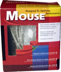 Данная модель приходится старшей сестрой мышке Defender 130. При наличии трех кнопок и колеса прокрутки форма корпуса осталась той же. Соответственно, так же, как и в случае с предыдущей моделью, при работе с Defender Wheel 720 возникает некоторый дискомфорт. Усиливается он, как только вы начинаете пользоваться колесом прокрутки. Благодаря нехитрому механизму, обеспечивающему дискретность вращения колеса и поддерживающей его пружине, при прокрутке этого колеса на себя возникает ощущение, что колесо обо что-то трется. Все это сопровождается характерным звуком. Но при этом механизм слежения за колесом все-таки оптический. На этом недостатки Defender Wheel 720 заканчиваются, а прелестей я в ней не обнаружил.