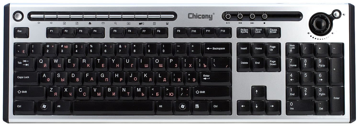 Положительной особенностью большинства клавиатур Chicony является стандартная раскладка основных блоков клавиш. Второе, за что компанию можно похвалить — неиспользование для символов кириллицы [темно-]красного цвета, который плохо различим на черных клавишах при недостаточном освещении. Вместо этого в компании наносят латиницу белым, а кириллицу — серовато-телесным, сохраняя и разный цвет раскладок (что некоторые пользователи считают нужным), и хорошую читаемость.