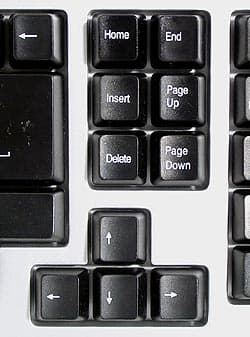 Как всегда в этом случае пришлось что-то делать с блоками редактирования и управления курсором. Последний сместился чуть вниз и правее, «подвинув» нижний ряд клавиш. К этому привыкнуть легко, и раздражения оно не вызывает. А вот блок редактирования пришлось сделать в виде трех, а не двух рядов клавиш. К данной особенности привыкнуть сложнее, хотя и возможно. Впрочем, такая компоновка на современных клавиатурах встречается все чаще и чаще, так что, может быть, она вскоре станет просто чем-то вроде альтернативного стандарта.