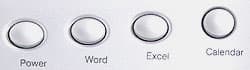 Итак, верхний ряд дополнительных элементов. Начинается с кнопки Power, которой можно выключить компьютер (а если ваш BIOS поддерживает включение с клавиатуры Windows 98, то и включить). За ней следуют три кнопки запуска часто используемых приложений — Word, Excel и Calendar.
