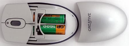 Особого внимания заслуживают габариты мыши — несмотря на свою беспроводную природу, она лишь немногим больше проводной Creative Lite и существенно меньше любого беспроводного «грызуна» (даже Cherry M-3000, входящая в состав CyBo@rd Plus, крупнее). Как такое могло получиться? Большие размеры беспроводных мышей связаны с необходимостью батарейного питания. В оптомеханических мышах применяются две батарейки ААА, обычно размещаемые поперек мыши. Такое их расположение требует помещения батарейного отсека в нижней части мыши (верхняя узковата), что ее увеличивает, а, значит, увеличивает и всю мышь. В оптических же мышах используются уже более крупные батарейки АА. Отсек еще больше, так что поперек батарейки никак не встанут. В результате их приходится устанавливать вдоль мыши и смещать в сторону оптический датчик. Отсюда и большие размеры, и несколько непривычное поведение беспроводных оптических мышей. Однако если мы перевернем Creative Optical, мы обнаружим, что сенсор находится точно посередине основания, как и в проводных моделях. Более того — никакого батарейного отсека снизу вообще нет. Просто создатели мыши сделали очень логичный шаг: поперек батарейки АА все равно не установишь, а вдоль они могут быть помещены и в верхней части мыши, не мешая расположению ее компонентов, которым жизненно необходимо быть снизу. Так что нужно просто снять с мыши «спинку», и тогда-то мы и увидим два места для двух батареек АА. Решение интересное конструктивно и позволяющее создать компактную беспроводную мышь. Правда вот, тех пользователей, которым больше мешают не размеры, а масса устройств, порадовать нечем: батарейки — вещь тяжелая, а никуда от них деться не получается.