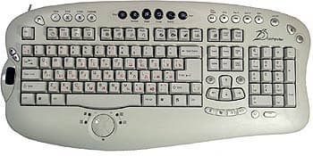 Справа расположена самая большая группа дополнительных кнопок, предназначенная для управления медиаплеерами: Play/Pause, Stop, Previous-Track, Next-Track, Eject (для открытия/закрытия привода CD). Еще правее помещены кнопки системного назначения: LogOFF (завершение сеанса пользователя), переход в спящий режим и выключение компьютера.