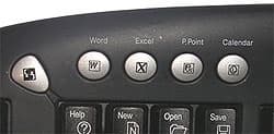 Крайняя слева группа кнопок — офисные, которые служат для запуска типичных офисных приложений: Microsoft Word, Excel, Power Point и календарь Outlook. Вместе с этими клавишами находится и кнопочка включения дополнительных возможностей функциональных клавиш (уже ставшая традиционной функция F-Lock). О ее реализации мы подробно поговорим позднее.