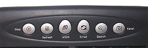 Ровно посередине поместился ряд Интернет-кнопочек, состоящий из кнопок Stop и Refresh (выполняют соответствующее действие в браузере), запуска веб-браузера и почтового клиента, открытия произвольной страницы поиска, а также закладки «Избранное». Стоит отметить, что размер кнопок этой группы разный — кнопки запуска браузера и почтового клиента имеют больший размер, что на фоне выделенного под эту группу места в корпусе клавиатуры выглядит достаточно экстравагантно :), хотя о вкусах, как известно, не спорят.