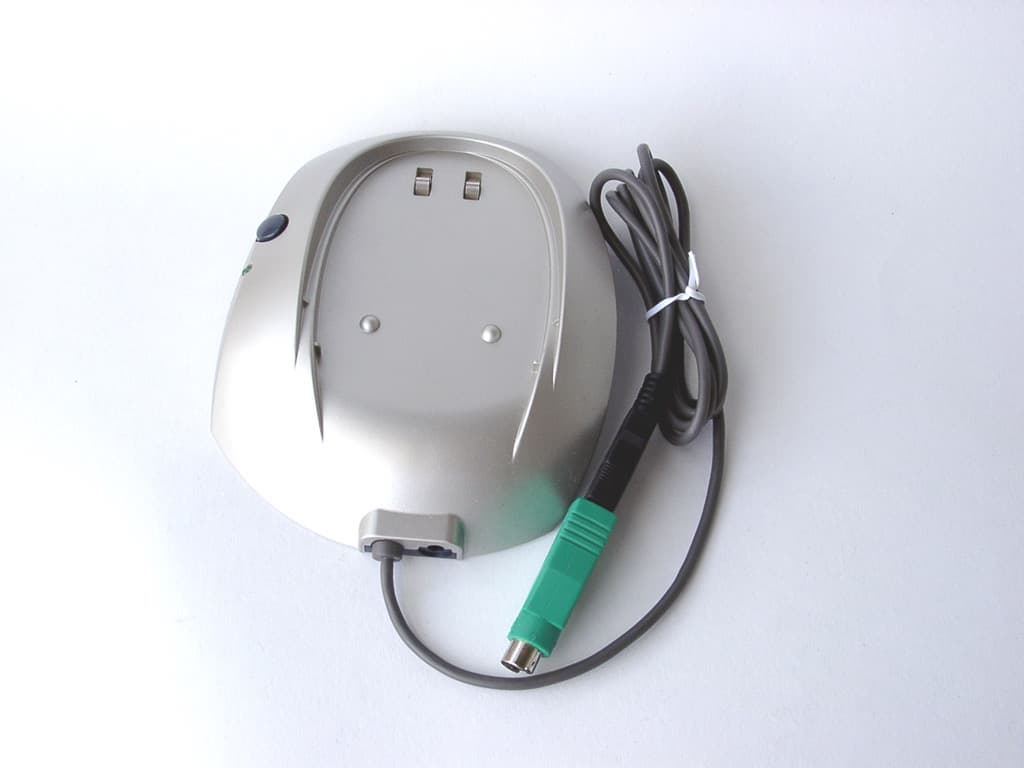 Подключать приемник несложно. Интерфейсный кабель длиной 1.43 м заканчивается USB-разъемом, но если вам почему-то не нравится USB-интерфейс, вы можете воспользоваться входящим в комплект переходником и подключить его к порту PS/2 вашего ПК. Из органов управления и индикации на корпусе приемника имеется одна кнопка и один светодиод зеленого свечения. Кнопка служит для идентификации мыши в случае, если она по каким-либо причинам потеряла связь с приемником. Для восстановления связи вам нужно сначала нажать кнопку на корпусе приемника, а затем нажать кнопку на нижней крышке корпуса самой мыши. При этом, до установления связи светодиод на корпусе приемника будет мигать, а после успешной идентификации мыши — светиться непрерывно до тех пор, пока мышь не перейдет в активное состояние. В моменты активности мыши, то есть, при ее перемещении или нажатии на одну из кнопок светодиод мигает, показывая тем самым наличие связи между ним и мышью.