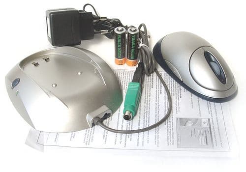 Красивая мышь! Даже не открывая коробку, можно оценить привлекательную внешность Defender 1440. Прозрачные пластиковые вставки в упаковке позволят вам достаточно хорошо рассмотреть мышь и приемник, не вынимая их. Но это далеко не все, что поставляется в комплекте Defender 1440. Комплект, попавший в нашу лабораторию, помимо мыши и приемника содержал в себе краткое русскоязычное руководство пользователя, сетевой блок питания, два Ni-MH аккумулятора YUASA DELTA (AA, 1500 mAh) и переходник USB-PS/2.
