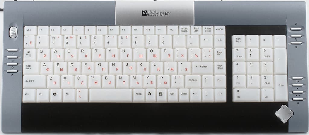 Все больше убеждаюсь, что нет предела совершенству, равно как и фантазии дизайнеров клавиатур. Воистину, эксперименты с расположением клавиш продолжаются, и если алфавитно-цифровой блок устоялся навеки, то все, что находится вокруг него, стабильностью не отличается. В данном случае мы имеем дело не со стандартной 104-кнопочной компоновкой, а с вариантом компактного ноутбучного расположения клавиш — в этом случае всё, что расположено между основным блоком и блоком дополнительных цифровых клавиш, втискивается мыслимыми и немыслимыми способами в этот основной блок.