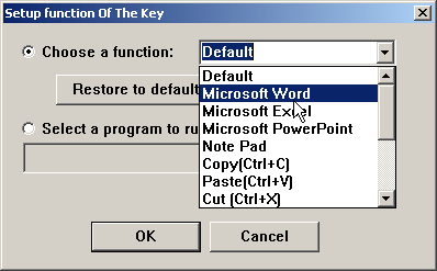 По непонятным причинам программируются только те группы, которые расположены справа от основного блока, то есть мультимедийные и офисные. Им можно назначить выполнение выбранной программы или выбрать действие из 14 представленных в выпадающем меню. | ![]() |
