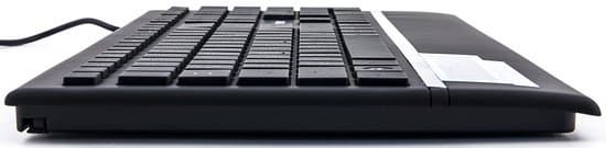 Для предотвращения скольжения используются всего две резиновые ножки прямоугольной формы, любителям активного передвижения клавиатуры по столу традиционно рекомендуем дополнительно подклеить их к корпусу.