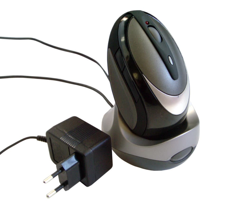 Приемник Defender 2200, как вы, наверное, уже заметили на фотографиях, по совместительству выполняет и функции, как бы, зарядного устройства. Новаторством дизайна он не блещет — «стакан», как «стакан». В общем, вполне обычное современное устройство. Главное, что обе возложенные на него функции он выполняет исправно. Не отличаясь от своих беспроводных собратьев, связка этого «стакана» с мышью подразумевает присутствие одного неудобства. Я имею в виду невозможность использования мыши в тот момент, когда осуществляется зарядка ее аккумуляторов, так как мышь на это время устанавливается в зарядное устройство приемника. Никаких кабелей для ее питания от USB порта компьютера, или других внешних источников питания, конструкцией Defender 2200 не предусмотрено (имеется только внешний сетевой адаптер для питания приемника). А так как, в данном случае используются два аккумулятора ААА, имеющих сравнительно не большую емкость, то заряжать их пользователю придется никак не реже одного раза за два дня. Я рекомендую внимательнее относиться к проблеме питания Defender 2200, чтобы вам не пришлось в ответственный момент лишиться возможности ею пользоваться.