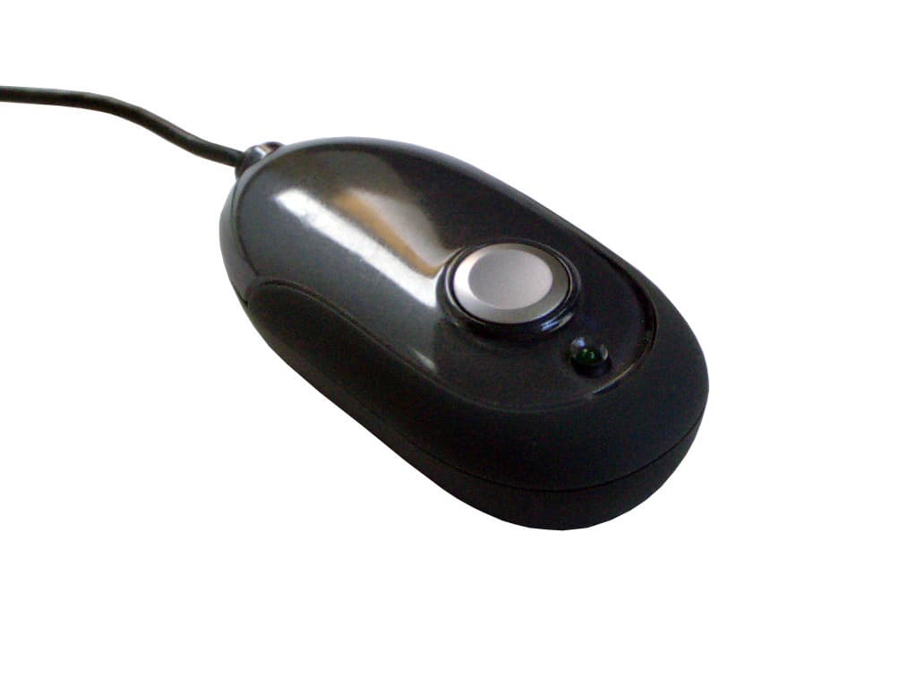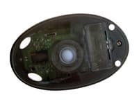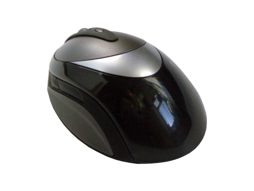 Начнем, пожалуй, с модели, которая меньше стоит — то есть, с оптико-механической Defender 2210. Как у любой беспроводной мыши у нее, естественно, имеется приемник радио сигнала. Именно на него, в первую очередь, я и обратил свое внимание — уж очень он привлек меня формой своего корпуса. Эдакий, космического вида, саркофаг с хвостом, только маленький, пластиковый, с кнопкой и зеленым глазом светодиодного индикатора. Кстати, будучи извлеченным из упаковки, на ощупь он кажется резиновым, хотя таковым не является и даже отдельных резиновых вставок на нем нет. Но, приемнику эти вставки и не нужны. Гораздо важнее для него, а, в конечном счете, и для пользователя, — интерфейсный кабель. В данном случае длина его оказалась вполне приемлема, для такого рода устройств, и составила 1.44м. А вот жесткость была чрезмерной и при малом весе самого приемника, из-за этой жесткости корпус весьма не уверенно чувствовал себя на рабочем столе. Другими словами, положение приемника в большой степени зависит от изгиба кабеля.