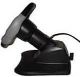 Далее приступим к необычной (по сравнению с другими игровыми рулями) процедуре: установке блока рычага переключения коробки передач и ручного тормоза. На нижней части корпуса этого блока имеются 4 большие присоски, чего в большинстве случаев достаточно. На случай жарких баталий в нижней части предусмотрено отверстие для крепления струбцины. Но струбцина одна и для крепления основного корпуса и КПП, что я считаю большим минусом комплекта. Кроме того, эта единственная струбцина отличается качеством, притом не в лучшую сторону: буквально после 3-4 сильных затягиваний резьба прижимного винта струбцины приказала долго жить.