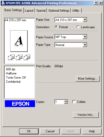 Установка драйверов EPL-6200L происходит быстро и без проблем; среди списка возможных языковых интерфейсов драйвера имеется и русскоязычный. Одновременно с драйвером устанавливается утилита Status Monitor 3, хорошо знакомая большинству пользователей других принтеров производства компании Epson.