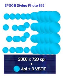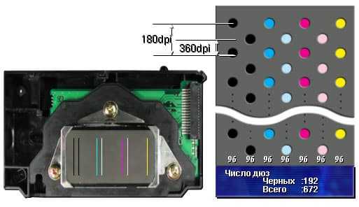 Впервые в индустрии головка позволяет печатать каплями объемом два пиколитра (!). Механизм работы сопел достаточно сложен — огромная скорострельность и столь малый объем капли требуют использования специальной системы резонаторов для гашения остаточных вибраций. Сложные прецизионные сопла, несмотря на микроскопические размеры, обеспечивают не только малый объем, но идеальную форму и траекторию вылетающих из них капель. При печати с максимальным разрешением (теперь это 2880х1440dpi) размер капель не варьируется, и результаты печати наглядно демонстрируют, что при столь малом объеме и удвоенном по вертикали разрешении это не нужно. Давайте присмотримся поближе: