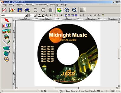 В программное обеспечение принтера входит программа для дизайна и печати оформления прямо поверх CD. Разумеется, для лучшего результата необходимы диски со специальным белым покрытием сверху. Кроме того, принтер способен печатать на толстых носителях толщиной до 1,3 мм включительно.