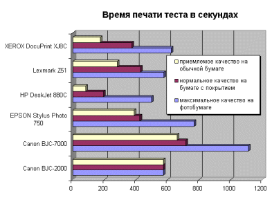 результаты показал XeroxDocuPrint XJ8C, незначительно опередив Epson Stylus Photo 750 и Lexmark Z51.