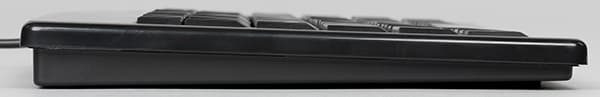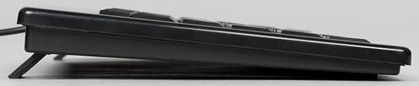 Благодаря небольшим размерам клавиатурой удобно пользоваться и просто положив ее на колени, хотя для максимальной производительности желателен стол. Как уже было сказано выше, толщина задней части устройства составляет 17 мм, но благодаря откидывающимся ножкам (элемент, почти исчезнувший из разнообразных slim-моделей) ее можно довести до 25 мм, изменив угол наклона клавиатуры.