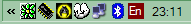 Как и ранее, MouseMate помещает свой индикатор в панель задач — традиционные глаза, следящие за курсором. С определенного момента стал индикатор более функциональным: когда заряд аккумуляторов подходит к концу, глаза начинают мигать желтым и красным цветом, что не заметить трудно. Удобно и оригинально :)