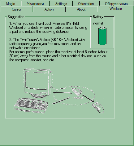 А к дальности работы особых претензий нет — официально мышь способна работать на расстоянии до полутора метров, на практике же «тянет» аж два с половиной. Нормальные цифры для частоты связи 27 МГц, т.е. для подавляющего большинства беспроводных оптических мышей, за исключением поддерживающих протокол Bluetooth («простые» модели, рассчитанную на частоту 2,4 ГГц среди оптики мне не встречались). Побочный эффект — программный выбор одного из 256 каналов радиосвязи, и, стало быть, наличие кнопки Connect. Впрочем, выбирать все равно пока особо не из чего — поддержку Bluetooth Genius пока не обещает, да и продукция остальных производителей, снабженная этим интерфейсом, стоит на сегодня неоправданно дорого.
