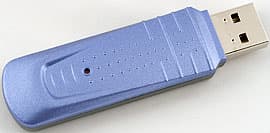 Ресивер в виде обычного USB-донгла, без опознавательных знаков, несёт на себе сильно заглублённую маленькую кнопочку для привязки к конкретному устройству. Нажать её можно, например, разогнутой скрепкой. Процедура смены идентификатора достаточно затейливая, но подробно описана в руководстве. Связь на частоте 2,4 ГГц, стандарт фирменный.