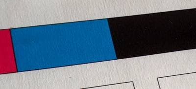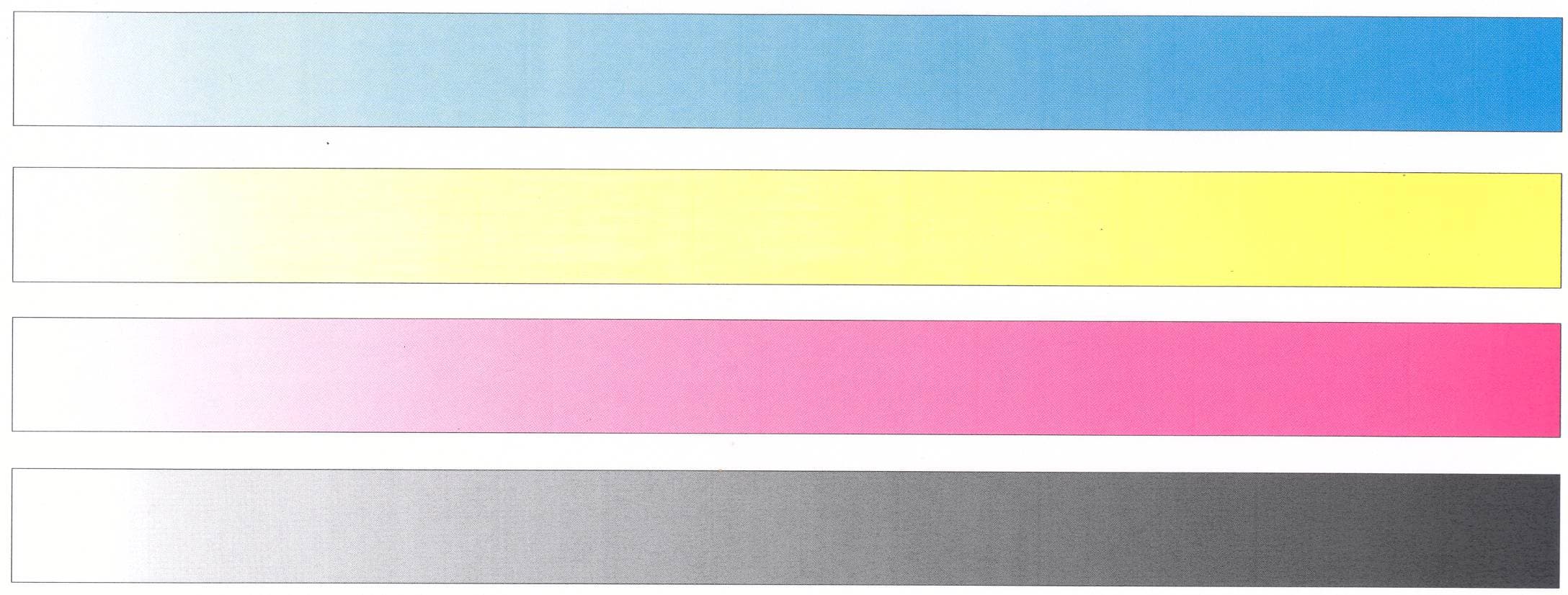 Тест на распечатку градиентных заливок, а также тестовых фрагментов C-M-Y-K / R-G-B, как видите, также пройден без замечаний. Подробности можно разглядеть, перейдя по ссылке к увеличенным фрагментам.