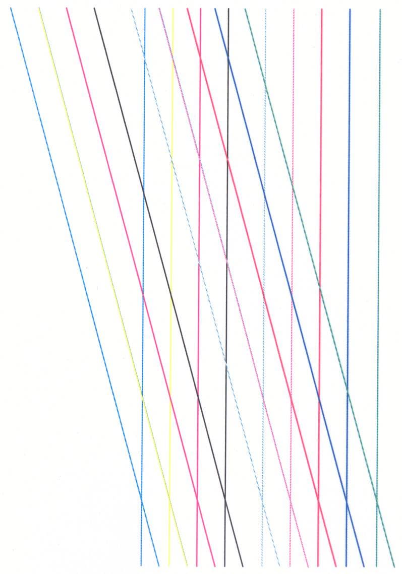 - Распечатка универсальной тестовой таблицы (здесь — файл-оригинал в векторном формате CDR программы Corel Draw). Таблица подработана и усовершенствована с учетом специфики тестирования качества печати градиентной заливки и векторной графики цветными лазерными принтерами. Например, в растровых градиентных одноцветных модулях применена заливка в 512 шагов (а не 128, как обычно); зеленые радиальные линии служат для проверки качества совмещения желтого и бирюзового цветов; в центре 90-угольной звезды размещена спираль толщиной 1 pt, также зеленого цвета