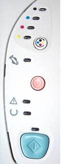Функциональные возможности панели управления принтером Color LaserJet 2500 сводятся, главным образом, к контролю за наполнением картриджей и индикации текущего состояния печати. Как у большинства современных моделей принтеров, основные функции управления Color LaserJet 2500 возложены на ПК. К кнопкам, расположенным на панели управления, вы будете обращаться, скорее всего, лишь при замене цветных картриджей.