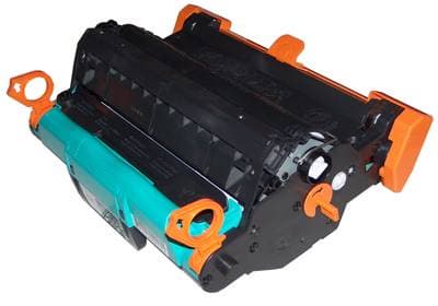 Каждый картридж упакован в защитный полиэтиленовый пакет, оборудован защитной крышкой и лентой, предохраняющей тонер от преждевременного попадания на вал. С подобными транспортировочными компонентами поставляется барабан.