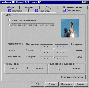 Драйвер печати позволяет регулировать насыщенность, яркость и световые