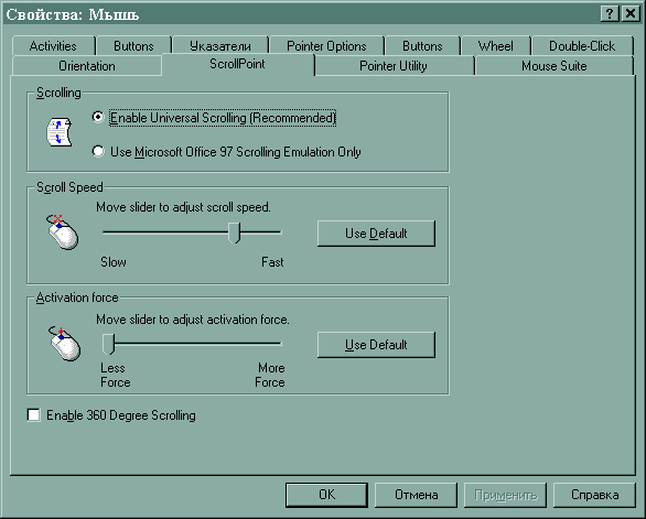 Но самая главная отличительная особенность этой мышки — скроллер. В эпоху торжества колес прокрутки он выполнен в виде миниджойстика, имеет приятную верхнюю поверхность с углублением под палец и 4 позиции нажатия. Причем если в горизонтальной плоскости доступен только медленный скролл, то при вертикальной прокрутке ее скорость зависит от силы нажатия на джойстик. Впечатления у меня сложились самые противоречивые. С одной стороны, колесико уже очень привычно. С другой стороны, если привыкнуть к такому «пеньку», то его функциональность гораздо выше, а движения пальца — меньше по амплитуде, чем при вращении колесика, и не надо им «загребать» — он просто лежит на месте и качается, что должно проявиться в меньшей усталости среднего пальца при интенсивной работе с текстами.