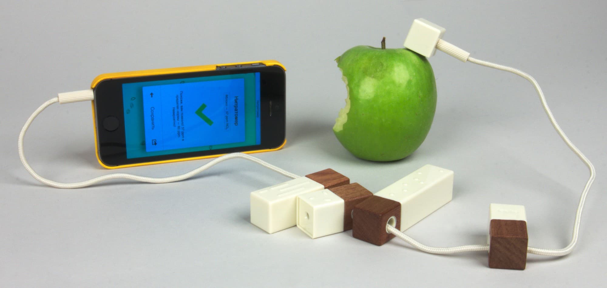 Итак, один конец кабеля вставляем в аудиоразъем смартфона или планшета Apple, а другой — в нужный датчик. Приложение автоматически определяет, какая Lapka используется в данный момент (хотя, судя по отзывам в AppStore, не всегда верно).