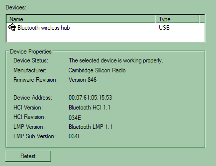 Точнее, не совсем тот же. Последний раз мы рассматривали драйвер ветви 1.3. Революционное изменение функциональности произошло в версии 1.4.2.10 (совместно с набором, кстати, использовалась версия 1.4.2.22): начиная с нее появились профили для HID-устройств с интерфейсом Bluetooth, т.е., говоря простым языком, начали поддерживаться мыши, джойстики, клавиатуры и прочие манипуляторы с данным интерфейсом. А вот остальные возможности остались неизменными, так что об использовании ресивера от diNovo в роли Bluetooth-адаптера я рассказывать не буду — полгода назад делал это в статье по донглам от X-Micro. Приведу один скриншот: