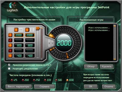 В панели, ответственной за настройку в играх, добавлена «изюминка» — регулировка чувствительности мыши для каждого из трёх положений индикатора. Таких позиций пять, что внушает надежду на появление в дальнейшем моделей с более точной настройкой, но для G5 активно три.