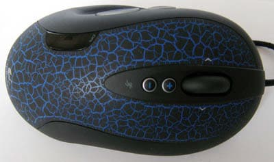 Основные кнопки слегка выпуклые, до краёв не доходят, но достаточно большие, и край за ними покатый, вследствие этого достаточно удобные. Нажатие мягкое, клик чёткий, ход маленький, но ложных срабатываний не отмечено. Боковые кнопки мягкие, практически без клика, это немного мешает работе, но нажатие чёткое. Несмотря на небольшой размер, оптимальное расположение приводит к тому, что они удобны. Кнопки за колесом конструктивно выполнены в виде качалки, клик чёткий, для нажатия надо приподнять руку над мышью. Возможно, получится нажимать суставом среднего пальца, но у нас не получилось — задевали за колесо. Колесо классическое, средних размеров, резиновое, без насечек, и только их отсутствие можно зачесть ему в минус. Нажатие на кнопку под колесом мягкое, почти без клика, tilt с чётким кликом, и там и там холостой ход небольшой. Пользоваться этими функциями удобно, прокрутки колеса при этом почти никогда не бывает. Что вполне естественно для игровой мыши — так как на колесо по-умолчанию назначена смена оружия, его ложные срабатывания в бою могут стоить дорого. Поэтому оно поворачивается с чётким кликом. Неудобно только быстро пролистывать большие документы — при этой операции отчётливо слышен громкий треск. В целом органы управления можно назвать хорошими. В плане придирок — хочется колесо с ребристой поверхностью и шире, с приподнятыми краями. А кнопки за ним для нас удобнее было бы перенести туда, где ползунок у Revolution VX.