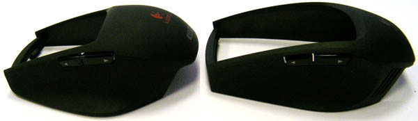 Форма мыши и конструктив таковы, что ограничивающим фактором в разработке новых корпусов будет только колёсико, слишком сильно утопленное между кнопками. На сами основные кнопки накладки сделать вполне возможно, боковые специально для этого и предназначены. Вот ещё дисплей и качалка для смены разрешения сенсора могут доставить некоторые проблемы, но решаемые. Размеры можно существенно увеличить во всех направлениях, форму можно изменить до неузнаваемости. Поэтому первое, что приходит в голову «реанимация» классической для производителя формы игровых серий MX5xx и G5-G7. Даже странно, что такой корпус отсутствует в стандартном комплекте поставки.