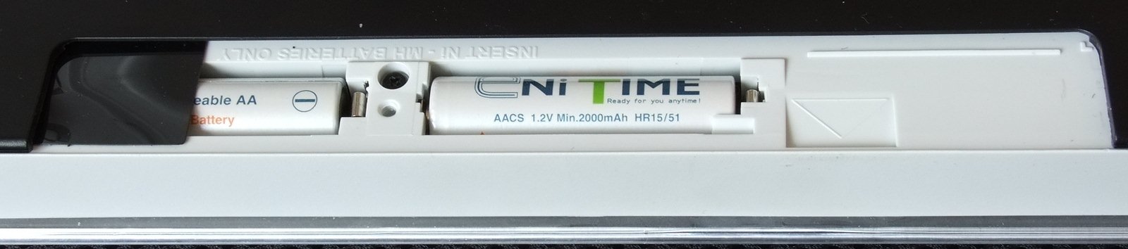 Питается клавиатура от двух аккумуляторов форм-фактора AA с низким саморазрядом (Low Self-Discharge), нам достались аккумуляторы GS Yuasa Enitime емкостью 2000 мА·ч, но в розничных экземплярах могут обнаружиться батареи других производителей.