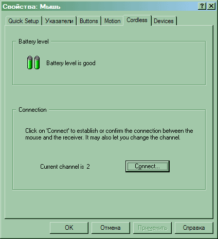 Закладку Motion мы рассматривать не будем (она такая же, как и раньше). Cordless — куда более интересная закладка, присутствующая всегда, когда вы используете любую беспроводную мышь от Logitech (без разницы — оптомеханическую или оптическую, новую или старую). С ее помощью можно оценить уровень заряда элементов питания, а также посмотреть или изменить канал, используемый мышью. Собственно, слежение за энергозапасом очень важная функция MouseWare, ради которой можно даже смириться с некоторыми недостатками программы. Кстати, если батарейки сядут, то определить это можно будет не только по светодиоду на корпусе — на экране появится предупреждение. Однако диалог почему-то не всплывает на передний план, так что его можно и пропустить ненароком.