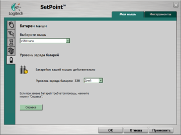 Емкость элемента питания можно оценить — либо в оставшихся днях работы (ожидаемых), либо в процентах от емкости. Также может улучшиться совместимость с игровыми приложениями, хотя, на наш взгляд, ноутбучная беспроводная мышь, в любом случае, не лучший выбор для любителя 3D-Action. Это что касается достоинств. Недостатки очевидны из размеров программы. При этом возможности настройки по-прежнему достаточно ограничены — нельзя, например, «повесить» на кнопку запуск любого приложения, а клавиатурные макрокоманды ограничены одной буквой в сочетании с Alt, Ctrl или Ctrl+Alt. Да, конечно, драйвер универсальный, однако мы уже сталкивались с гораздо более богатыми возможностями настройки при меньшем объеме. Радует только то, что для данной модели (как уже не раз было сказано выше) установка SetPoint вовсе не обязательна.