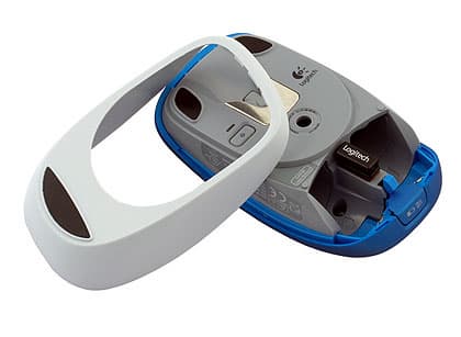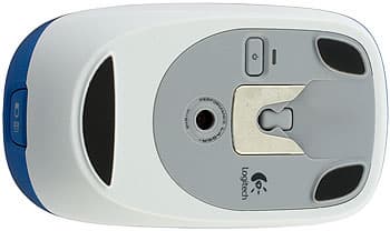 Несмотря на наличие в корпусе батарейного отсека, а также углубления для хранения ресивера, изящество линий корпуса почти ничем не нарушается — сначала даже непонятно, куда помещать батарейки. Подробное изучение грызуна позволяет найти на его заднем торце кнопку, нажатие которой приводит к тому, что отделяется нижняя часть корпуса, под которой и прячутся все углубления. Идея очень правильная, поскольку такое их расположение позволяет не идти ни на какие компромиссы, типа смещения в сторону оптического сенсора и т.п. Здесь он расположен так же, как и во многих проводных моделей. Кроме него, на брюшке обнаруживаются: фиксатор для клипсы с выключателем питания и еще один «долговременный» выключатель последнего. Он нужен, разве что, при транспортировке мыши, поскольку она умеет впадать в спячку одновременно с выключением компьютера, да и вопрос энергосбережения в последних беспроводных манипуляторах Logitech проработан лучше некуда.