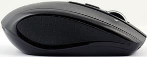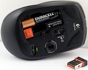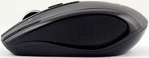 На брюшке матового чёрного пластика три широких тефлоновых накладки, кнопка отключения и отверстие лазерного сенсора, сильно смещённое к большому пальцу, по центру в предне-заднем направлении. А также крышка батарейного отсека с задвижкой, ответственной за её открывание. Рядом с посадочным местом для батареек есть гнездо для ресивера и кнопка для его извлечения. При вставленном на парковочное место приёмнике питание мыши отключается автоматически. Если сильно сжать мышь, в области батарейного отсека различим скрип.