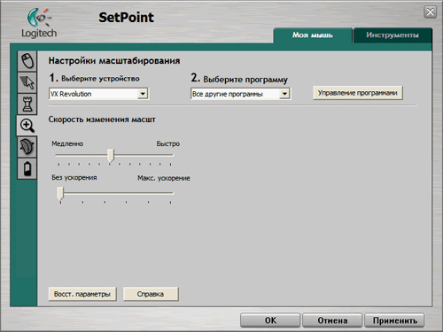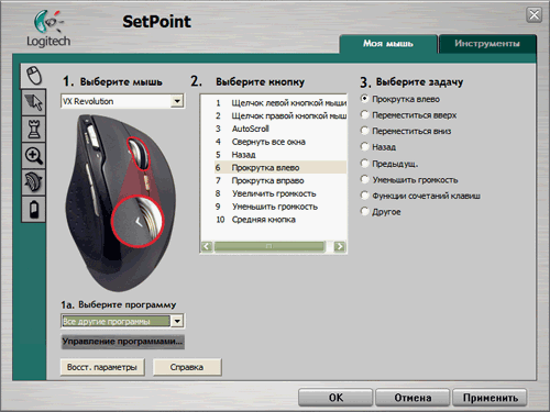 А также немилосердно «глючный» и достаточно запутанный, хотя бы в настройке скроллинга из двух мест. Не понравилось то, что набор действий для определённых клавиш ограничен. Не понравилось, что горизонтальную прокрутку нельзя приспособить к ползунку Zoom, а zoom к качанию колёсика. И совсем не понравились непредсказуемые сбросы настроек! А ещё ОНО достаточно часто «висло» при завершении работы. Сыроватая программа! Не соответствует цене грызуна.