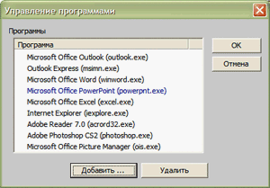 Также присутствует некий набор стандартных программ (Office, Photoshop, IE, etc), для каждой из которых заданы немного отличающиеся действия для клавиш и настройки колёсика прокрутки. Из этого списка можно убрать программу, если есть желание использовать в ней глобальные настройки, или добавить произвольную, путём указания расположения исполняемого файла. При желании, можно расширить возможности настроек ручной правкой файла default.xml в %ProgDir%LogitechSetPoint, также можно посмотреть другие .xml файлы в этой директории.