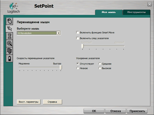 Вторая закладка регулирует скорость движения указателя и ускорение при быстром перемещении.